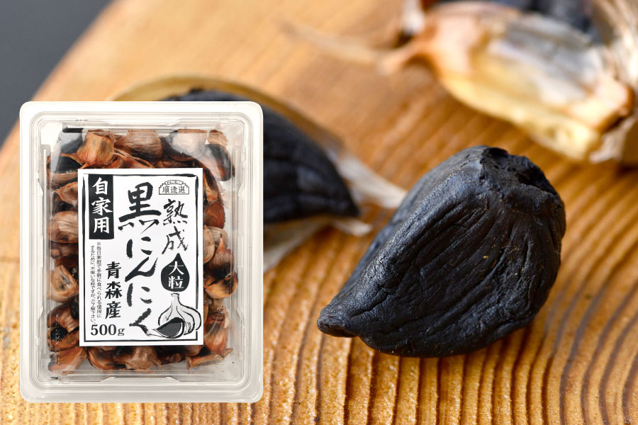 青森産の大粒生ニンニクを熟成室でじっくりと温度と湿度を調整しながら1ヶ月ほど熟成させると、このように真っ黒になってきます。匂いもなくなります。